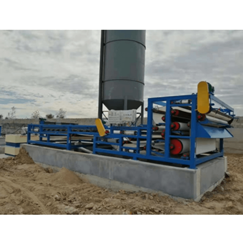 在三網濃縮脫水機的基礎上針對洗砂廠污泥特點進行技術創新,增加預處理沉淀塔、滾軸的加強、整機機身加長、網帶增加至4條。實現洗砂出泥量大連續運轉的特點。